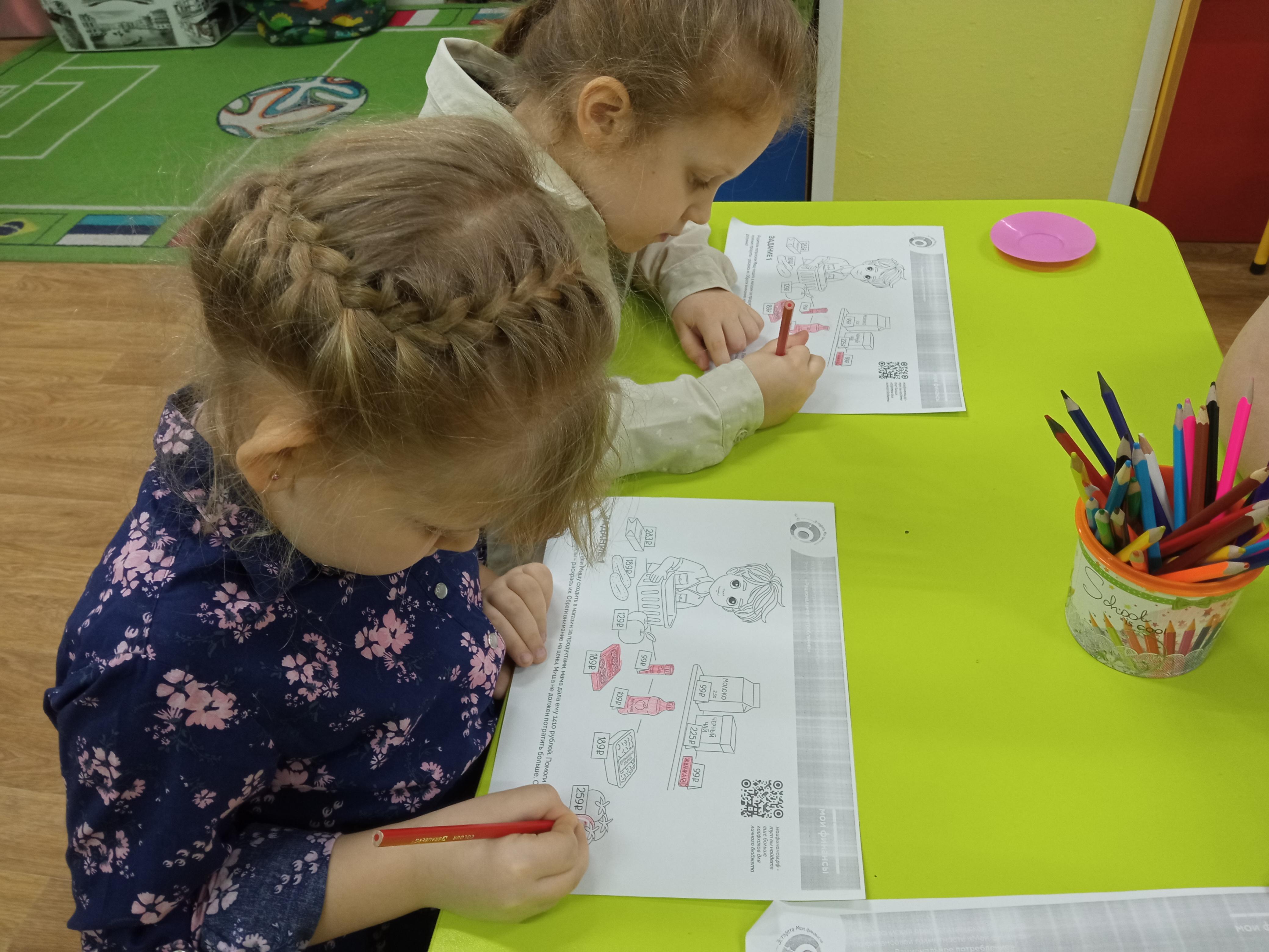 Дети учатся дифференцировать вредные и полезные продукты, отмечая их цветами: вредные- красный цвет. Их покупать не стоит, так как они наносят вред организму.