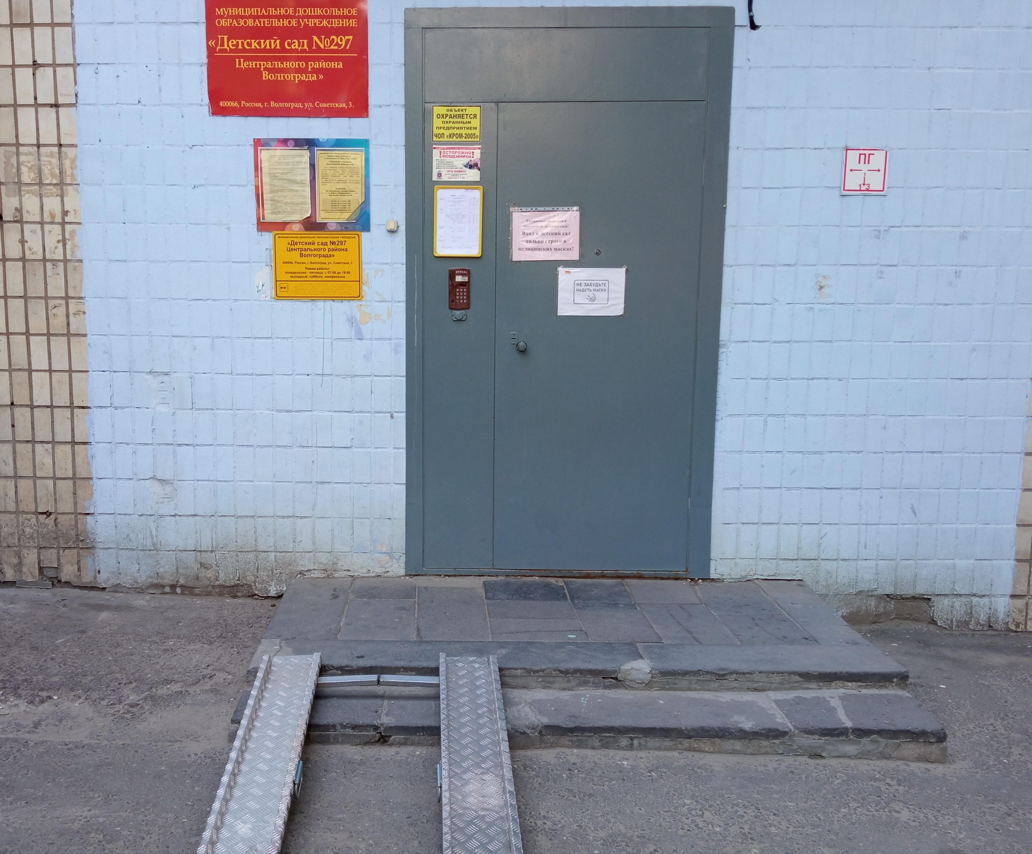Оборудование территории, прилегающей к МОУ Детскому саду № 297, и помещений с учётом доступности для инвалидов: Оборудование входных групп пандусами, платформами (безбарьерная среда)